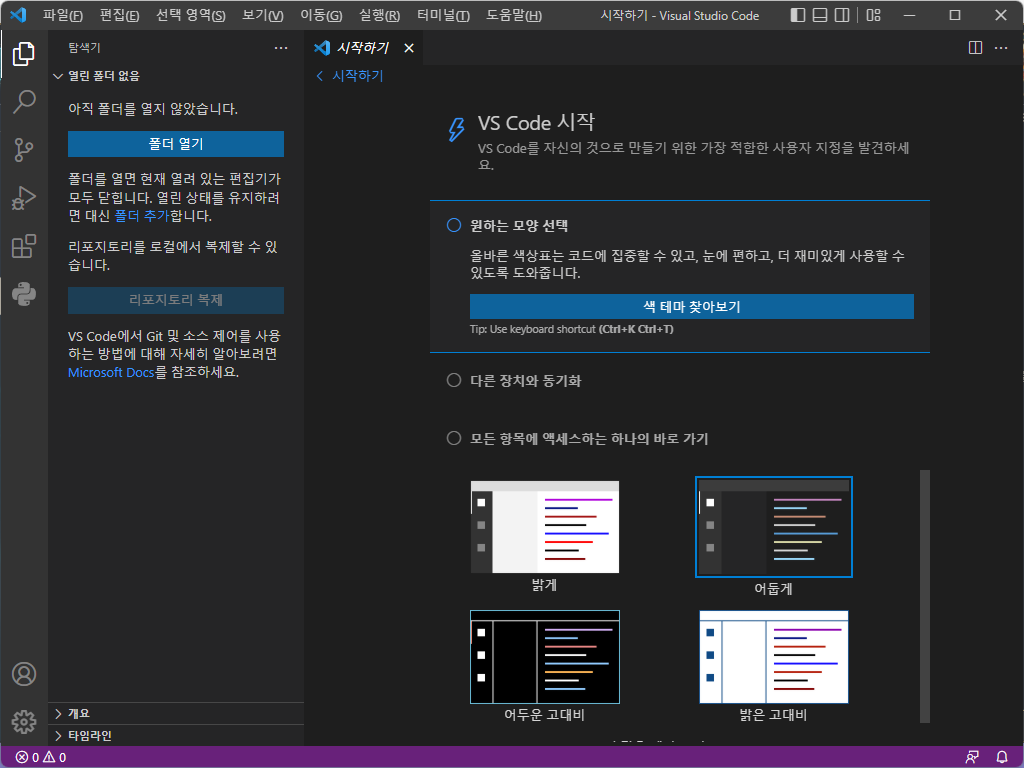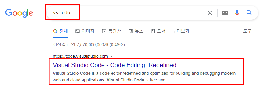 구글에서 vs code를 검색하여 다음의 사이트에 접속합니다.