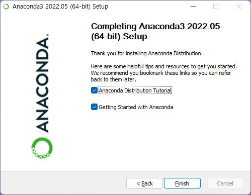 체크를 할경우 윈도우에 아나콘다가 설치된 위치를 등록합니다.