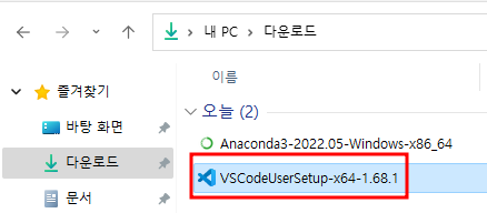 내 PC > 다운로드 폴더에 다운로드 받은 파일을 더블클릭하여 설치합니다.